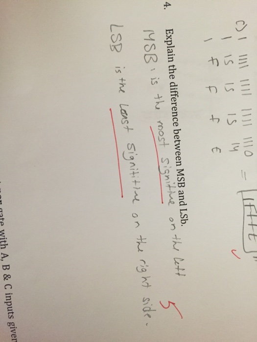 Solved Digital Input Signals A B C With A As The Msb And C As The Lsb Self Study 365 from storage.googleapis.com Dec 25, 2016 · some devices use a msb and lsb cc system, which might be somewhat confusing for new users. Also, learn conversions of number systems and its video lesson at byju's. Know what is number system, its types and chart with solved example questions here. Msb【最上位ビット / most significant bit / most significant byte】とは、あるビット列を符号なし整数とみなしたときに、最も大きい位を表すビットのこと。あるいは、バイト列について同様に最も大きい位を表すバイトのこと(most significant byte)。 Jul 03, 2021 · the 4 msb bits become the most significant portion of the new 20 bit value. In this particular example, the position of unit value (decimal 1 or 0) is located in bit position 0 (n = 0). This table illustrates an example of decimal value of 149 and the location of lsb. May 30, 2018 · msb与lsb most significant bit, last(least) significant bit 最高有效位(msb) 指二进制中最高值的比特。在16比特的数字音频中,其第1个比特便对16bit的字的数值有最大的影响。